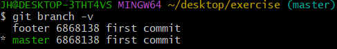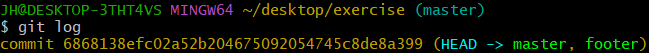 커밋 로그에서 볼 때 footer 브랜치는 커밋ID와 동일한 해시값을 가리키고 있는 것을 확인 할 수 있다.