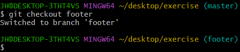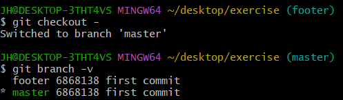 master 브랜치 최초 커밋에 분기된 브랜치가 footer 브랜치로 그 이후 커밋이 진행되지 않아 두 브랜치의 커밋 위치는 같다.