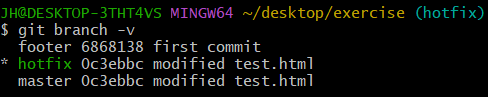 footer 커밋해시키를 사용하여 footer 브랜치로 이동해보면