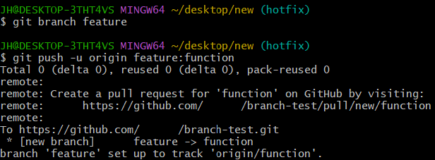 로컬 저장소에 feature 브랜치를 만들고 원격 저장소에 리모트 브랜치 function 생성하였다.