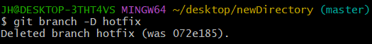 $ git branch -D hotfix