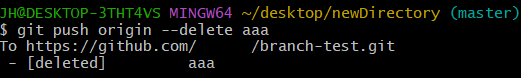 원격저장소 origin의 리모트 브랜치 aaa를 삭제하였다.