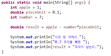 정수 타입으로 변경하여 계산하는게 정확한 값을 출력할 수 있다.