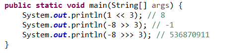 a >>> b : 정수 a를 b만큼 오른쪽으로 이동 (빈자리는 0으로 채워진다.)