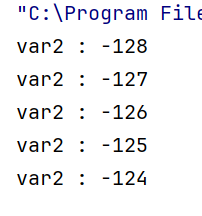 127에서 1을 더하는 경우 -128로 저장되는 것을 알 수 있다.